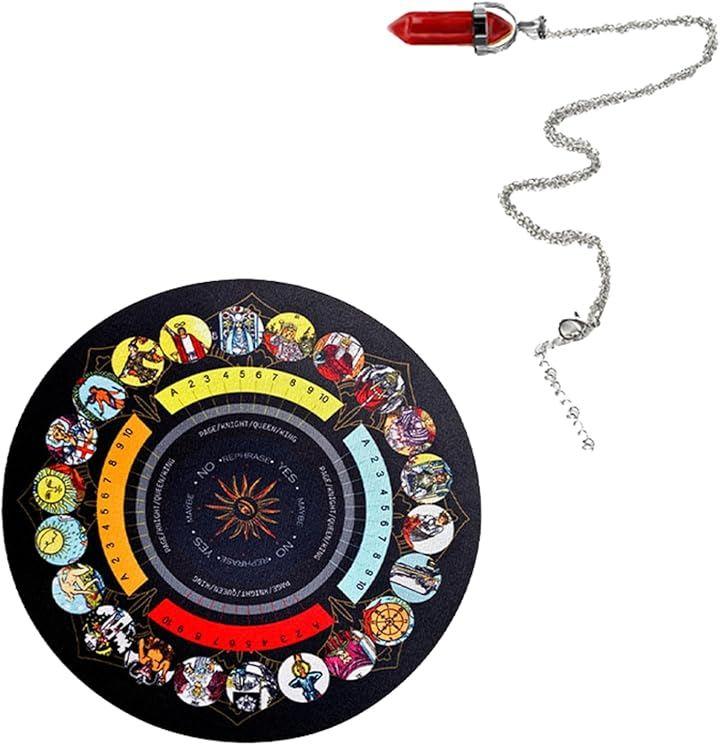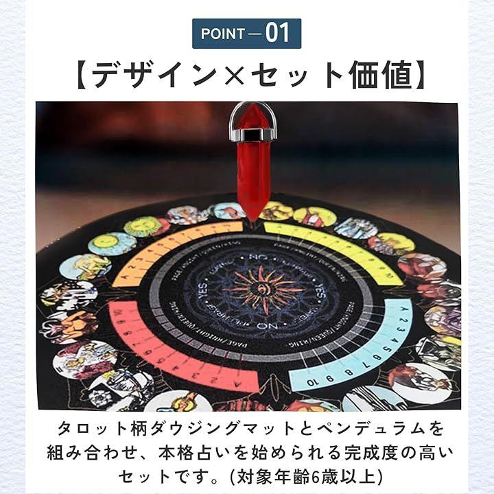 「デザインxセット価値」タロット柄ダウジングマットとペンデュラムを組み合わせ、本格占いを始められる完成度の高いセットです。