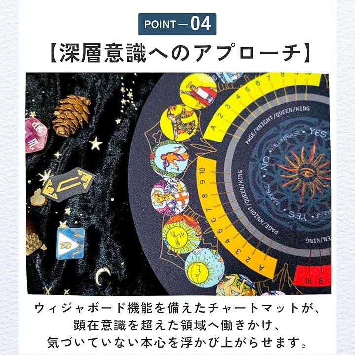 「深層意識へのアプローチ」ウィジャボード機能を備えたチャートマットが、顕在意識を超えた領域へ働きかけ、気づいていない本心を浮かび上がらせます。