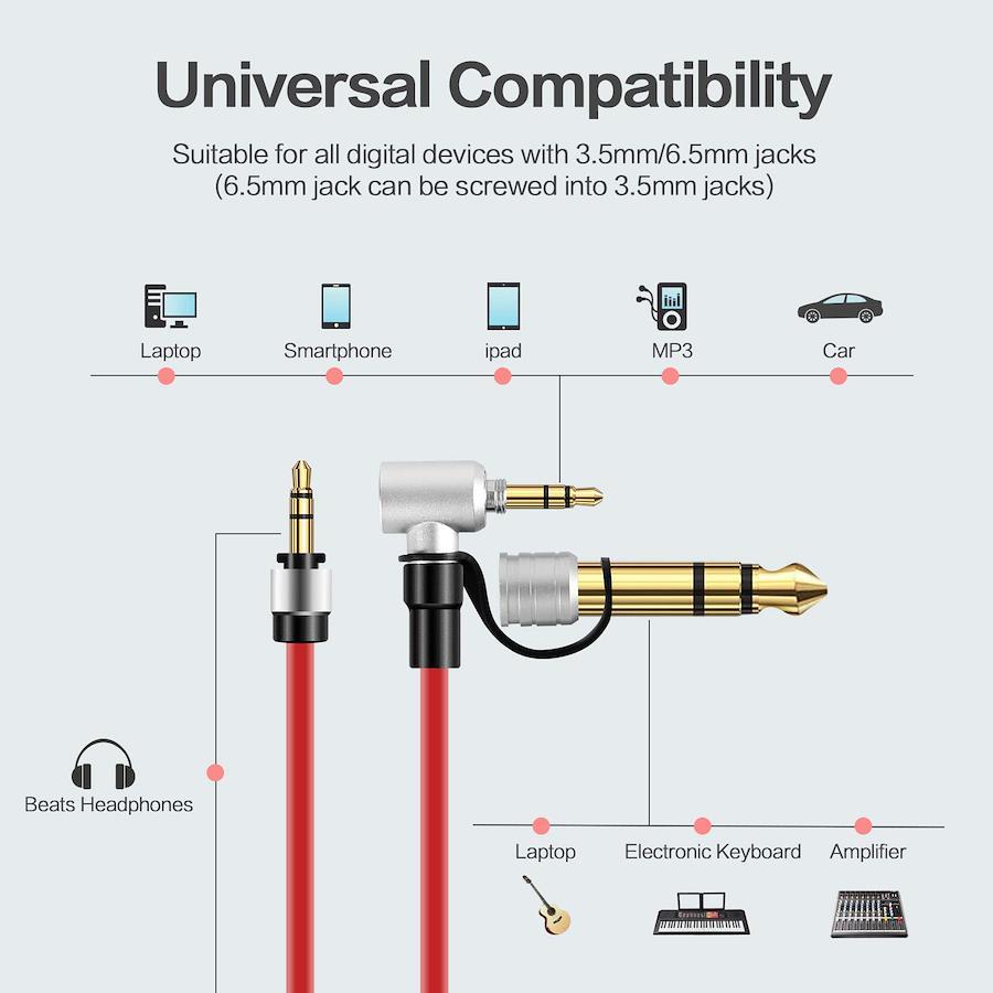 高品質のオーディオ延長ケーブル、Beats ヘッドホンに最適。3.5 mmジャックを搭載したオーディオケーブル。スマートフォン、音楽プレーヤー、タブレットデバイス用。すべてのビートなどにフィットし、推奨3.5mm L型交換用オーディオケーブル ヘッドフォン用 Monster Beats (赤色) Monster Beats ヘッドフォンの交換用アクセサリー。Monster and Beats By Dre Studioヘッドフォンと一緒に使用するのが最適です。