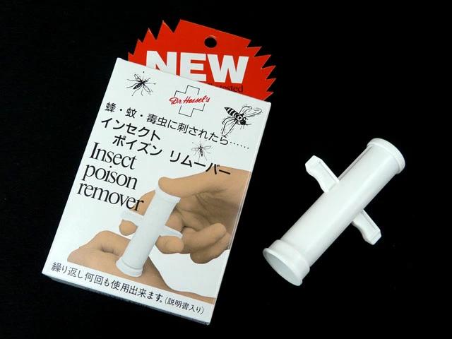 蜂・蚊・毒虫に刺された時に毒液や毒針を吸引作用で抽出する器具です。キャンプなどアウトドアライフで、医師の手当を受けるまでの応急処置として、またご家庭にも備えていただくと安心です。