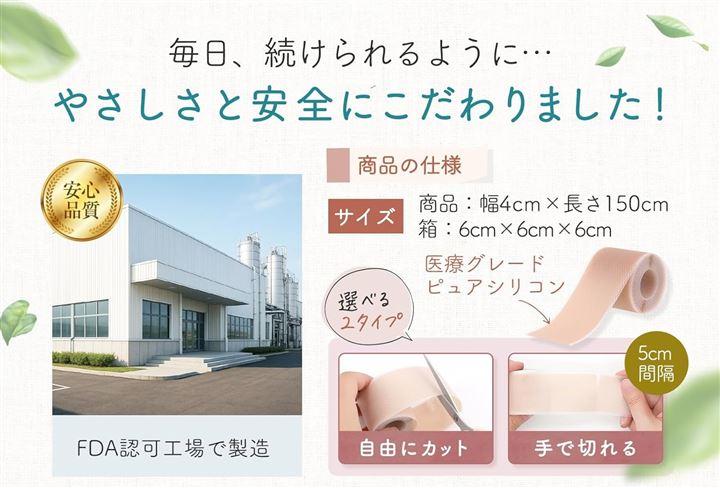 医療現場でも使用される高品質シリコンを採用し、ケロイド・肥厚性瘢痕のリスク軽減をサポートします。