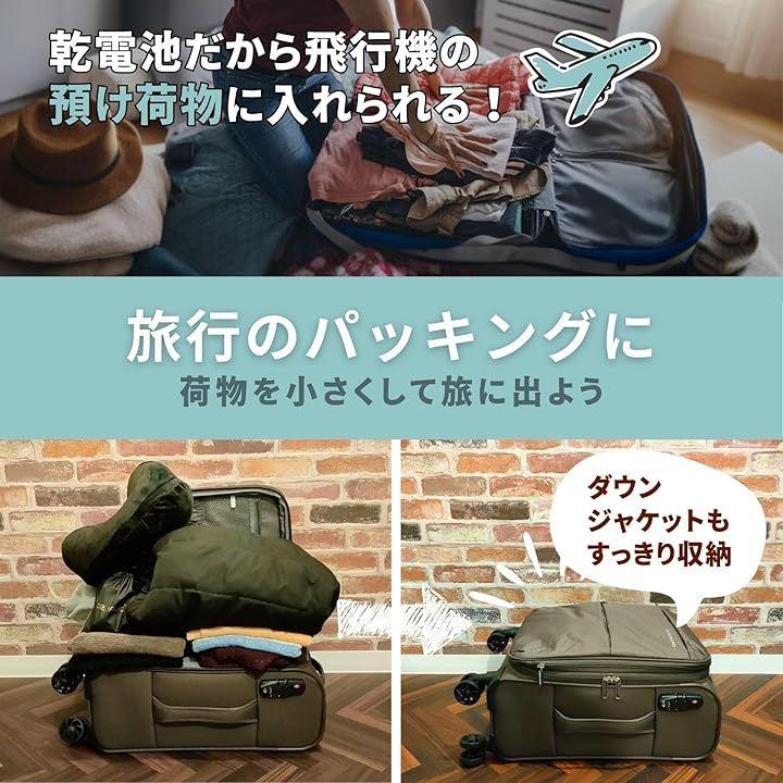 「乾電池タイプで安全・どこでも使える」 リチウムイオン電池に抵抗のある方や、飛行機移動が多い方にも安心。