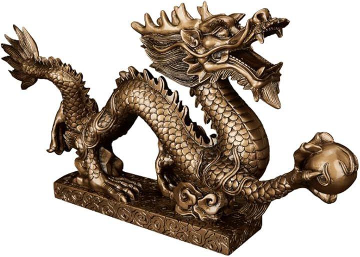 Dragon Figurine, Entryway, Feng Shui Ornament, 4-Claw Dragon, Golden Dragon, Good Fortune, Dragon Prayer