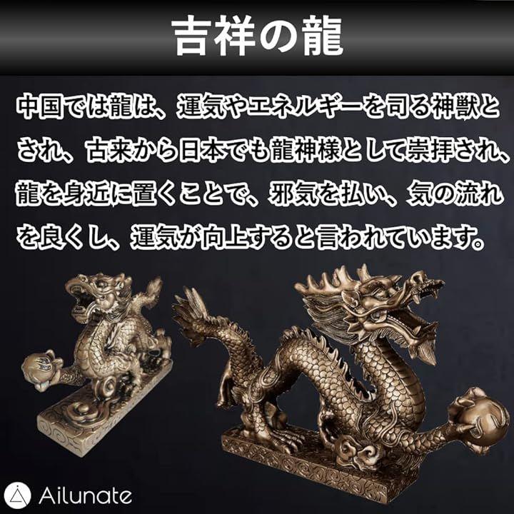 「古来から崇拝された神獣」中国では龍は、運気やエネルギーを司る神獣とされ、古来から日本でも龍神様として崇拝され、龍を身近に置くことで、邪気を払い、気の流れを良くし、運気が向上すると言われています。