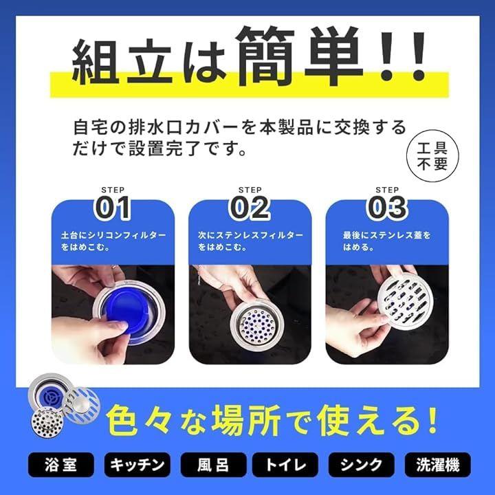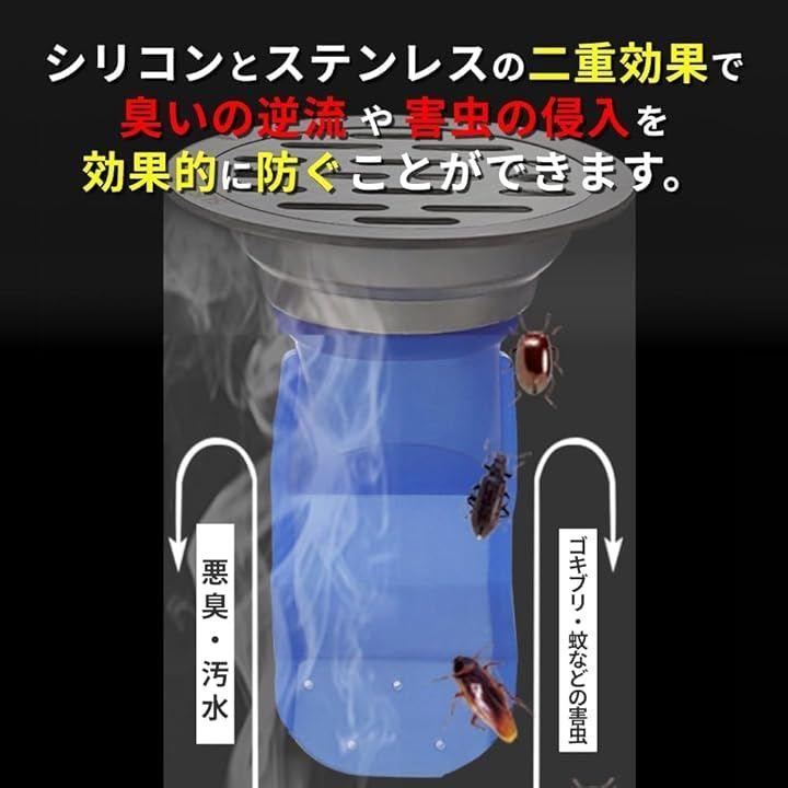 「これ1つで悪臭を防ぐ」本製品に通常の排水口カバーを取り替えるだけで、害虫の侵入を防ぎ、抗菌・防腐・消臭効果を得ることができます。
