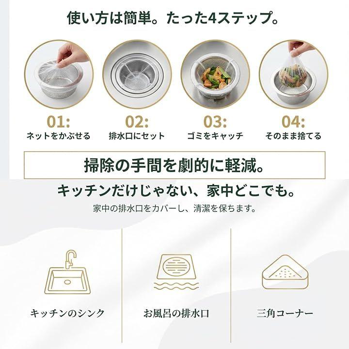 「多用途で便利」シンクやお風呂の排水口、三角コーナーなど、さまざまな場所で活用可能。