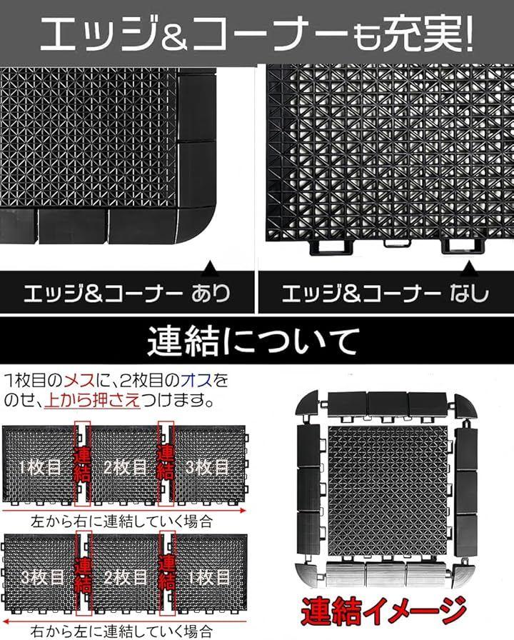 *「商品仕様」サイズ:1枚の寸法:25cmx25cm 厚み:1.1cm 16枚セット/約1平方メートル *QD-BYM水はけマットは4色があり、お好みの組合せでフロアを作り上げることができます。