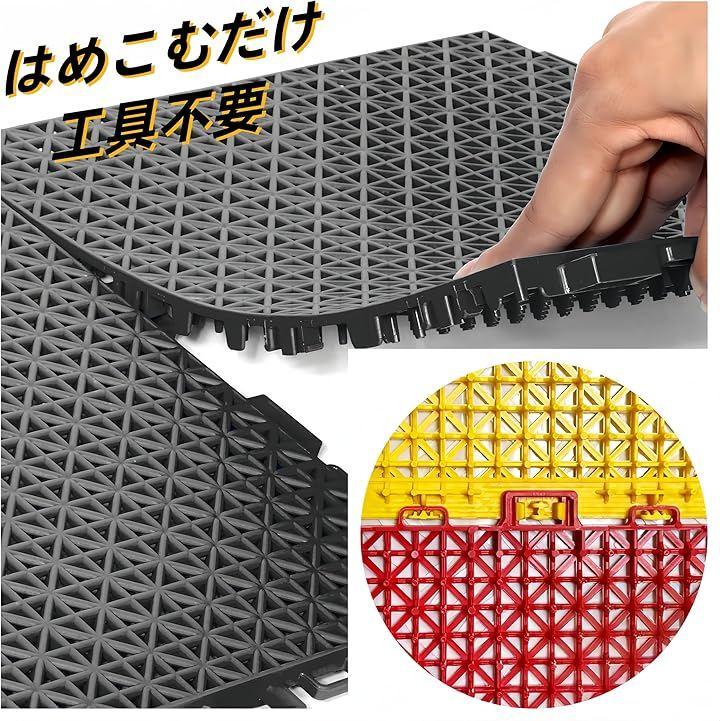 *「商品仕様」サイズ:1枚の寸法:25cmx25cm 厚み:1.1cm 16枚セット/約1平方メートル *QD-BYM水はけマットは4色があり、お好みの組合せでフロアを作り上げることができます。