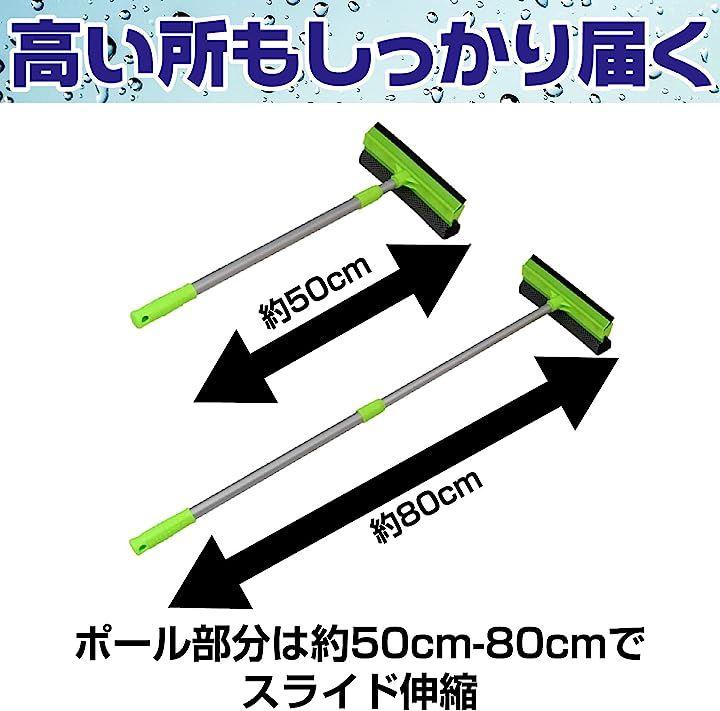 約50cm~80cmまで伸縮 可能、浴室の壁、窓拭き、網戸掃除など高い場所でも楽々。