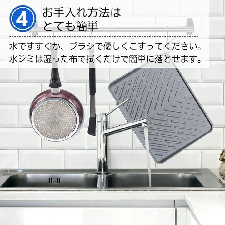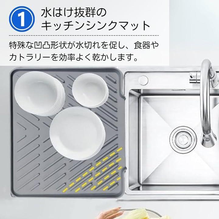 「清潔さをキープできるシンクマット」立体的な凹凸が通気を促し、食器類がすぐに乾きます。