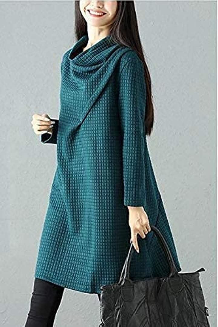 Drape A-line Tunic Dress Waffle Cut and Sew Women's Dress Long Sleeve Green
