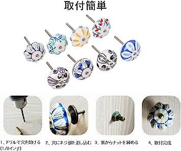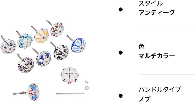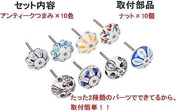 引き出し 用 つまみ 取っ手 おしゃれ 柄違い 10色セット ナット付き セラミック アンティーク レトロ ドアノブ ドア取っ手引き出し用 つまみ 柄違い 10色セット ナッ