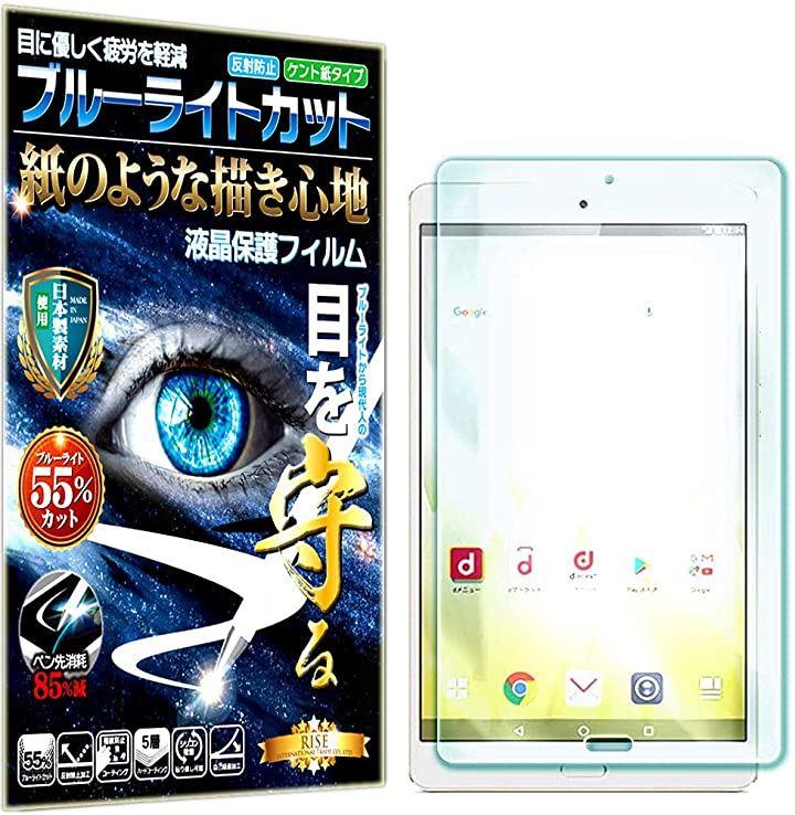 RISEブルーライトカット紙のような描き心地の保護フィルムはブルーライトを約55%カットするフィルム素材を使用しており、カット率で目の負担を軽減し、目を優しく守ります。