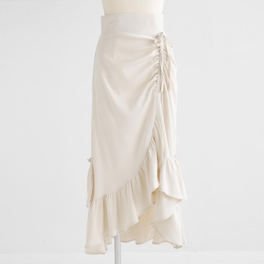 上品で女性らしい着こなしを叶えるアシメフリルマーメイドスカート