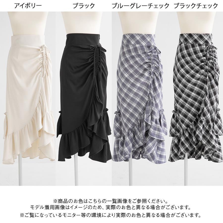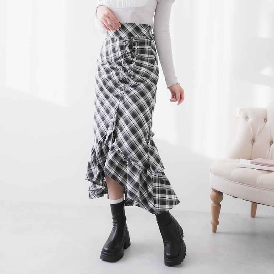 ドロストデザインのアシメフリルマーメイドスカートのご紹介。