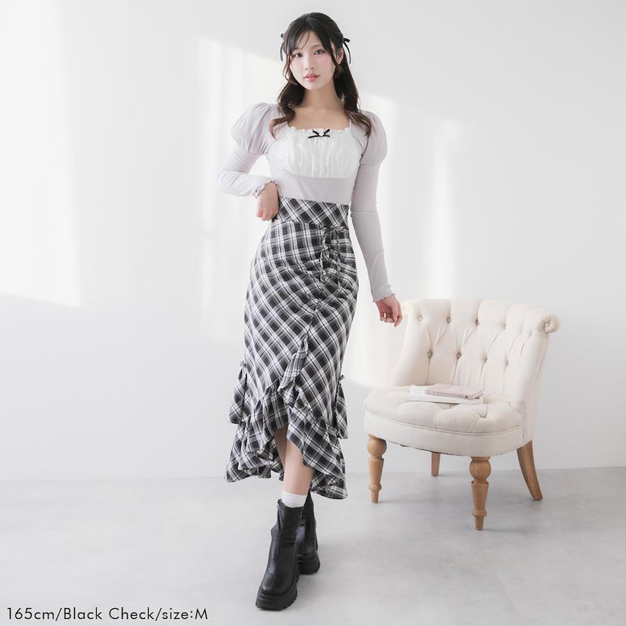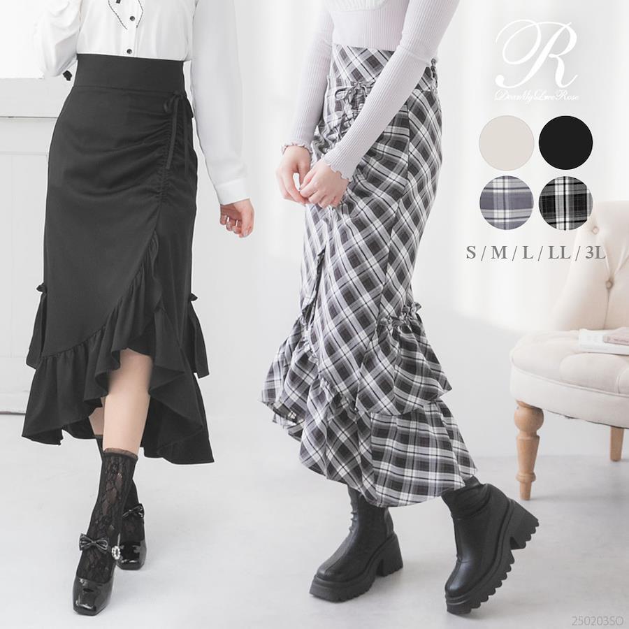 ドロストデザインのアシメフリルマーメイドスカートのご紹介。