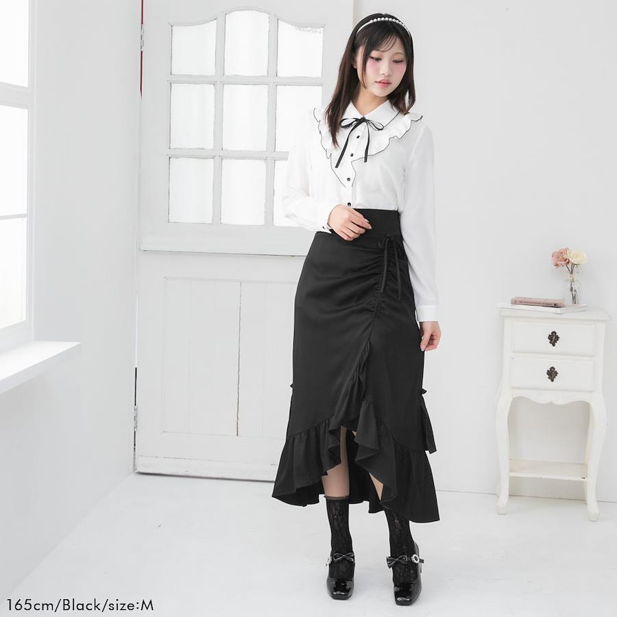 ドロストデザインのアシメフリルマーメイドスカートのご紹介。