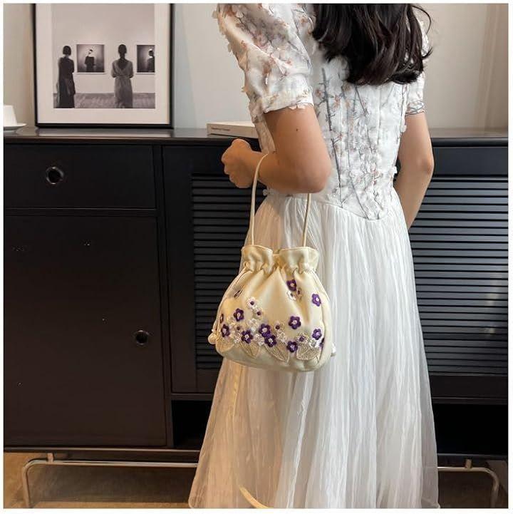 ・キャンバス生地に刺繍のお花があしらわれた2wayバッグです。