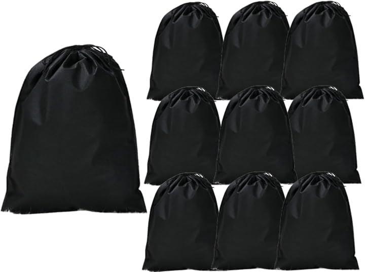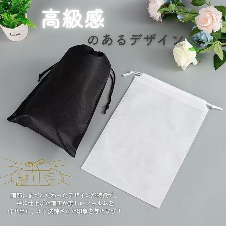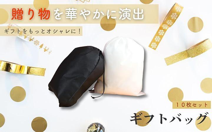 商品内容:ギフトバッグ 10枚セット 素材:不織布 サイズ:25cm x 35cm カラー:ホワイト、ブラック 特徴:巾着タイプ、通気性、ホコリ防止、多用途対応