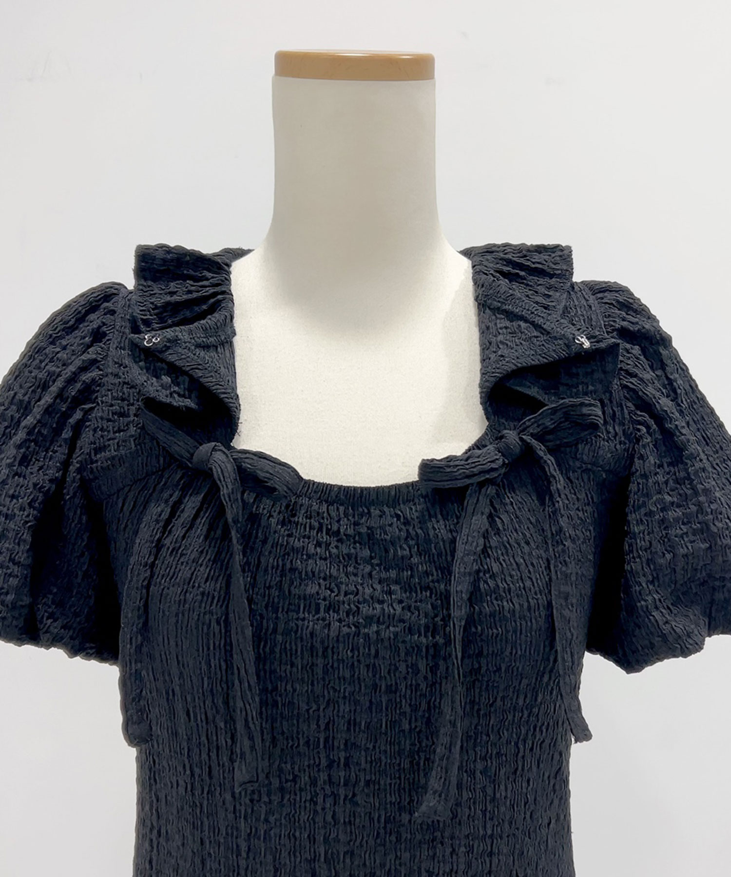 トレンドのドロスト×バルーンスリーブデザインのミニワンピースのご紹介。【デザイン】バルーン袖のボリューム感と、ピタッとしたシルエットが絶妙なバランスで、あざと可愛い印象を与えてくれる1枚。襟は花びらのようなフリル襟で、女の子らしさをプラス。袖口はゴム入りで、メリハリを出してスタイルアップ効果も◎。襟元はスプリングホックで開閉可能。ホックを外して被りでご着用いただけます。首回り、裾口、胸元はゴム入りで、さらに本体生地も伸縮性抜群なのでストレスフリーで快適な着心地で体にフィットしてくれます。スカートのサイドドロスト部分はお好みでクシュっと感を調整可能です。【素材】ポコポコとした表面で、サラッとした肌触りの生地感です。伸縮性と通気性に優れ、快適にご着用いただけます。※裏地は付いていないため、インナーパンツやキャミソールの着用が必須です。【コーディネート】これからの季節はハイソックス、ニーハイソックス、ルーズソックスにサンダルやスニーカー、パンプス等を合わせていただくと旬なスタイルが完成♪短い着丈なので、下にフレアパンツやレースレギンス等を合わせてレイヤースタイルも◎お好みでキャップやリボンバレッタ等のヘアアクセを追加して、色んなスタイリングをお楽しみください♪《透け感》あり 《生地の厚さ》薄手 《裏地》なし 《伸縮性》あり《生産国》中国