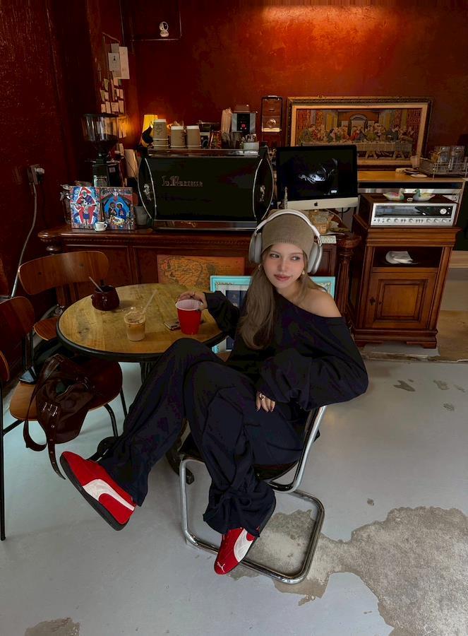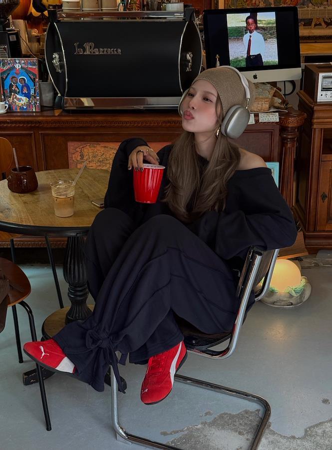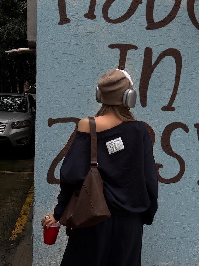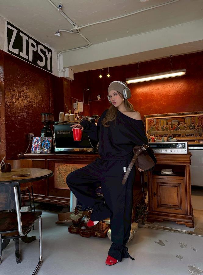 ◼︎ 着るだけで海外ガールコーデの完成部屋着になりがちなスウェットを、思わずお出かけしたくなる1着に。ルーズなシルエットに抜け感をプラスして、こなれた印象に仕上げました