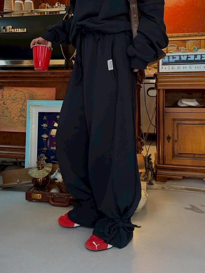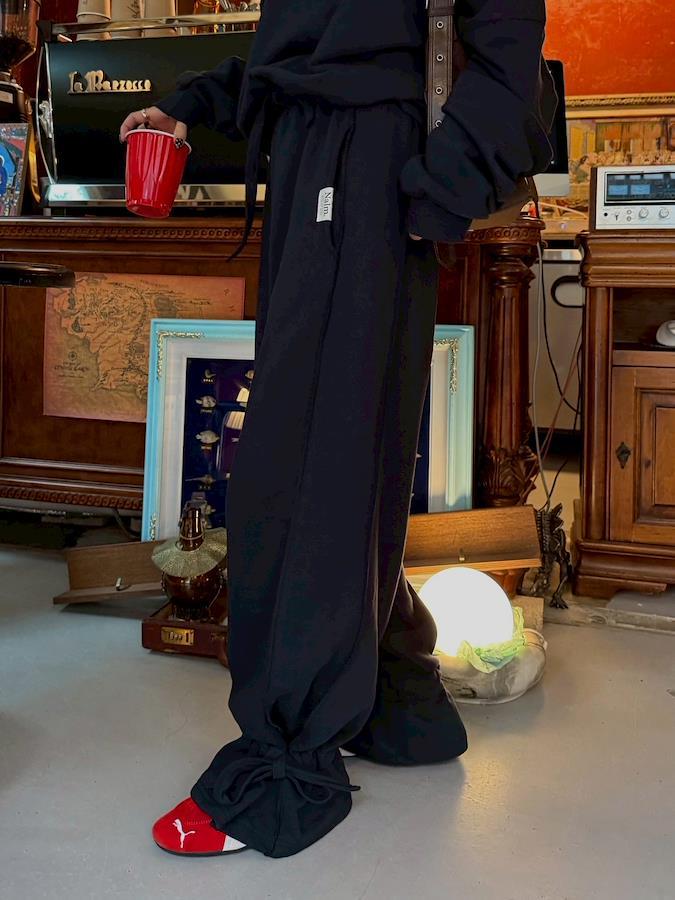 ◼︎ 裾のドロストはその日の気分で調整可能裾の紐はそのまま垂らして履いていただくとストリート感が増して◎Nalm.オススメは、キュッと結んで履いていただくと、一気に海外ガールの雰囲気で着こなしていただけます