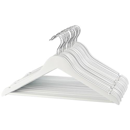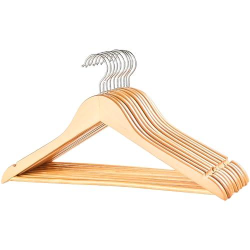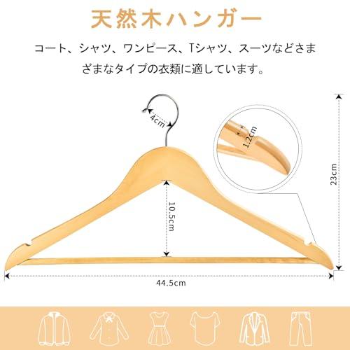 【商品仕様】バー付き木製ハンガーのお得な10セットです。サイズ:幅約 44.5cm*肩厚1.2cm*高さ約 23cm。 【使い便利】軽い衣類も滑られないようにU型設計されました。肩紐が付く衣類なら、直接に掛けて非常 に便利です。また、横棒に、スカート、ズボン、マフラーなどを掛ける多機能ハンガーです。 【高級感溢れる】シンプルなデザイン、高級天然木で作られたハンガーですので、木目が綺麗で高級感 溢れます。無毒で安全、耐久性に優れて、重いコート、スーツでも大丈夫です。 【収納スペースUP】厚さ約1.2cm、シャツやブラウスもドンドン掛けられちゃいます。薄型なので収納ス ペースUP! 【型崩れしにくい】人型に近づけるため肩のラインをなだらかに設計されており、衣類が型崩れしにく くなっています。