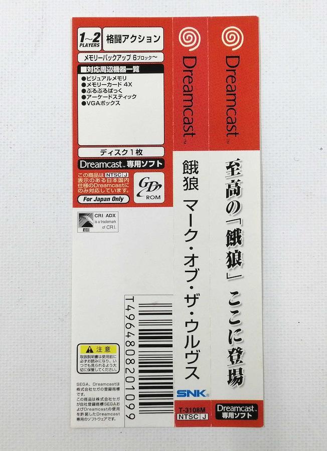ドリームキャストソフト 餓狼 MARK OF THE WOLVES SNK ドリームキャストソフト SNK餓狼 MARK OF THE WOLVESドリームキャストソフト