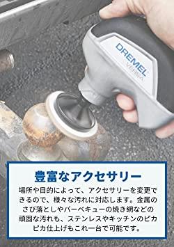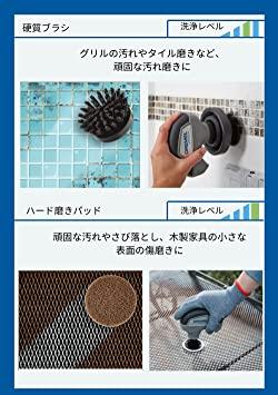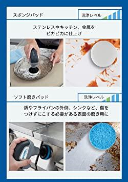 ソフトなスポンジパッド、サビや焦げ付きにハード磨きパッド、ブラシなど4種類のアタッチメントが標準付属