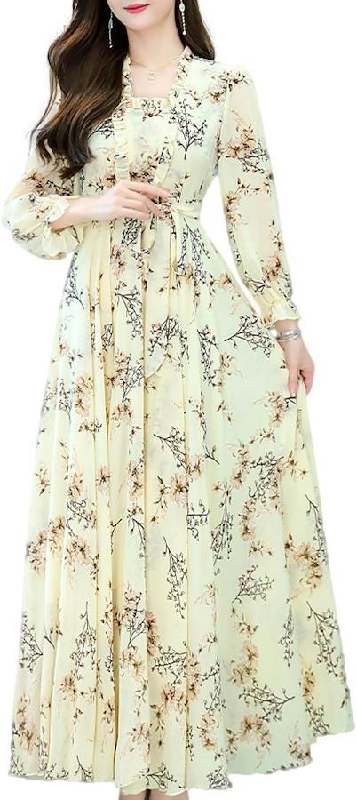 軽やかなシフォン素材で作られ、優しく体を包み込むデザインが、上品で女性らしいシルエットを作り出します。