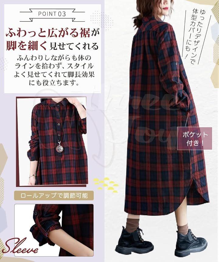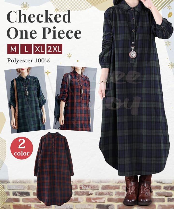 「デザイン」大人っぽいチェック柄ロングワンピース。