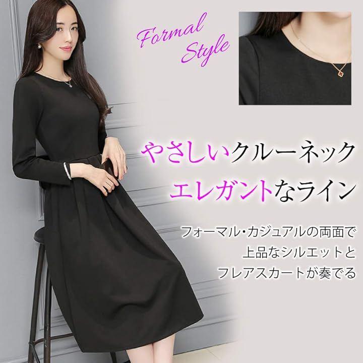「飽きのこないかたち」優しい印象で飽きのこない、「長袖」タイプのクルーネックフォーマルワンピースです。