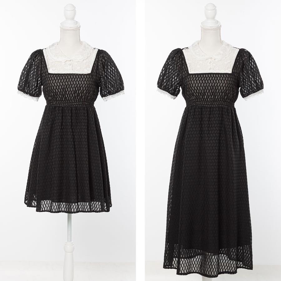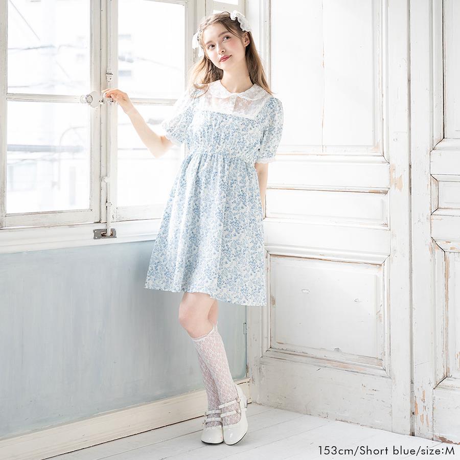 レトロガーリーな雰囲気がかわいいアソート柄ワンピースのご紹介。【デザイン】ヨークと襟のチュールレースやレトロっぽい柄が目を惹く1枚でかわいいワンピースです。ダルメシアン柄、小花柄、ジャガード柄の3つからお好みのデザインが選べるお選びいただけます。ロングorショートから着丈を選んでいただけます。ヨーク部分はお花の刺繍が施されたチュールレースになっていて上品さをプラス。ほんのりデコルテが透けるので抜け感たっぷりです。ウエスト部分はきゅっとしたデザインながら、窮屈感なく着ていただけます。スタイルアップ効果も抜群◎ヨーク部分のボタンを開けて被りで着用いただく仕様で、ウエストのシャーリングゴムはテンションがゆるめなので被りで簡単に着用可能です。