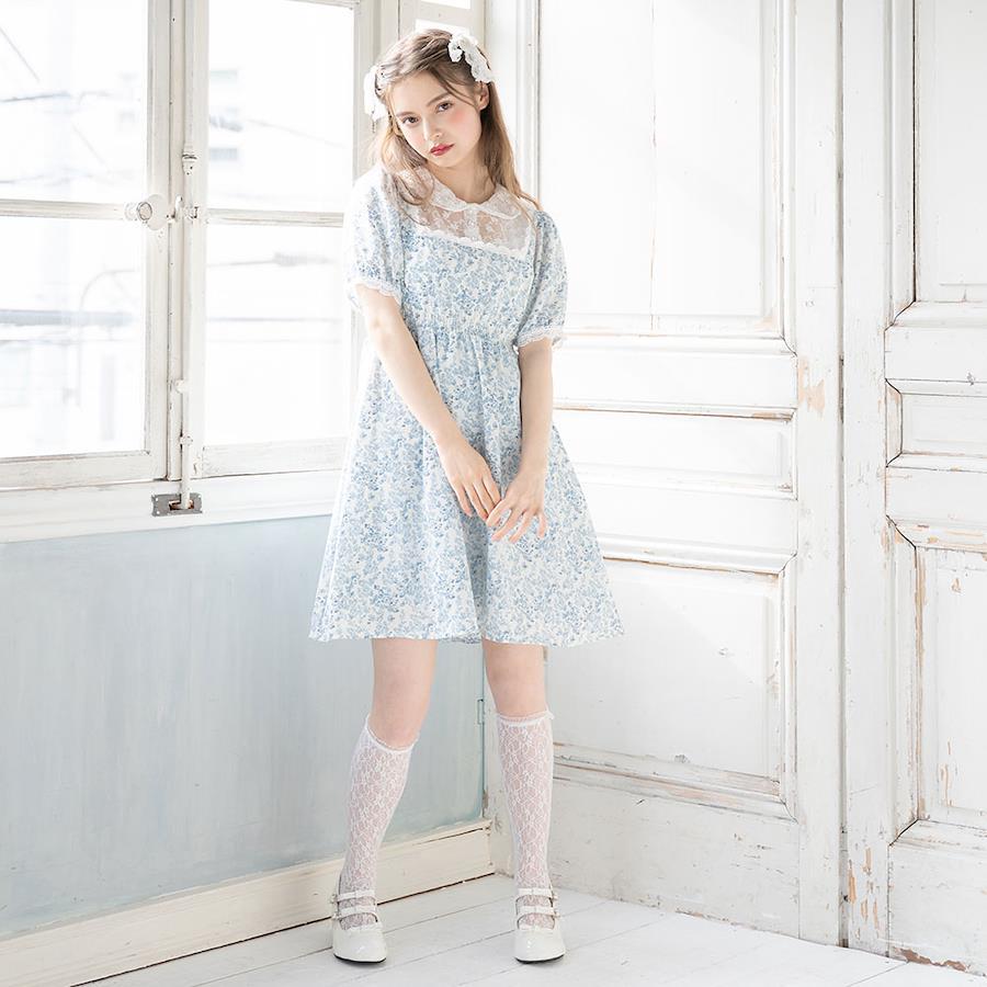 レトロガーリーな雰囲気がかわいいアソート柄ワンピースのご紹介。【デザイン】ヨークと襟のチュールレースやレトロっぽい柄が目を惹く1枚でかわいいワンピースです。ダルメシアン柄、小花柄、ジャガード柄の3つからお好みのデザインが選べるお選びいただけます。ロングorショートから着丈を選んでいただけます。ヨーク部分はお花の刺繍が施されたチュールレースになっていて上品さをプラス。ほんのりデコルテが透けるので抜け感たっぷりです。ウエスト部分はきゅっとしたデザインながら、窮屈感なく着ていただけます。スタイルアップ効果も抜群◎ヨーク部分のボタンを開けて被りで着用いただく仕様で、ウエストのシャーリングゴムはテンションがゆるめなので被りで簡単に着用可能です。