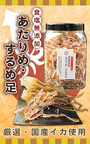 【2つの食感とおいしさが味わえるお得なセット】北海道産のあたりめと国産のするめ足をポットに詰め合わせたおつまみセットです。イカの胴本体を裂いて作られるあたりめと足の部分を使用したするめ足は、異なる食感をお楽しみいただけます。噛めば噛むほどに増していくイカの味わいを、ぜひ食感とともにご賞味ください!【国産のイカ本来の味わい】国産の新鮮なイカを使用したするめは、食塩無添加で余計な味付けをせず、イカ本来の味わいがお楽しみいただけるスルメです。さらに、北海道産のあたりめは身が肉厚で食べ応えがあります。噛めば噛むほどにイカの香りと味わいが口いっぱいに広がり、いつまでも食べていたい、そんなあたりめです。【家族みんな、するめで健康おやつ】噛み応えのあるするめは、しっかりと噛むことで顎の力が強くなり、唾液の分泌を促します。さらに少量でも満たされた気持ちになるので、少しずつ楽しむことができる健康的なおつまみです。大人の方はもちろん、塩分無添加ですのでお子様のおやつとしても安心してお楽しみいただけます。【味の変化が楽しめるおつまみ】食感や味わいの異なるあたりめとするめ足を入れたおつまみセット。毎日の晩酌のおつまみとして、ビールや焼酎、日本酒などのお酒や気分に合わせて味の変化をお楽しみいただけます。また、炙って香ばしくしたり日本酒に浸けたり、アレンジも自由自在です。【低糖質で高たんぱく質な優秀おやつ】するめは、高たんぱくで動物性アミノ酸が豊富に含まれています。少しで食べ応えもあり、ちょっと小腹が空いた時の補食としても大活躍。さらに、低糖質で低カロリー!健康を意識している方や体のスタイルを気にしている方にもおすすめなお菓子です。【原材料】いか【重要】メーカーによる商品リニューアルに伴いパッケージ(内容量も含む)変更が行われた場合、新パッケージでお届け致します事ご了承願います。