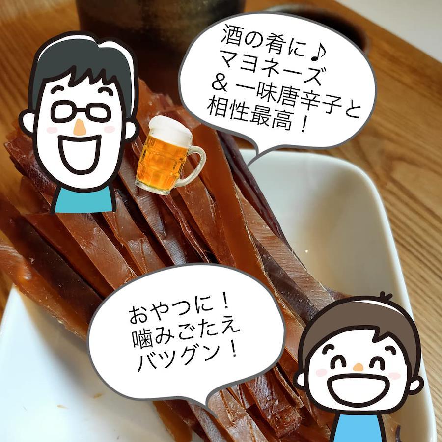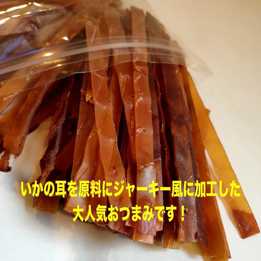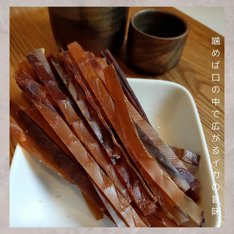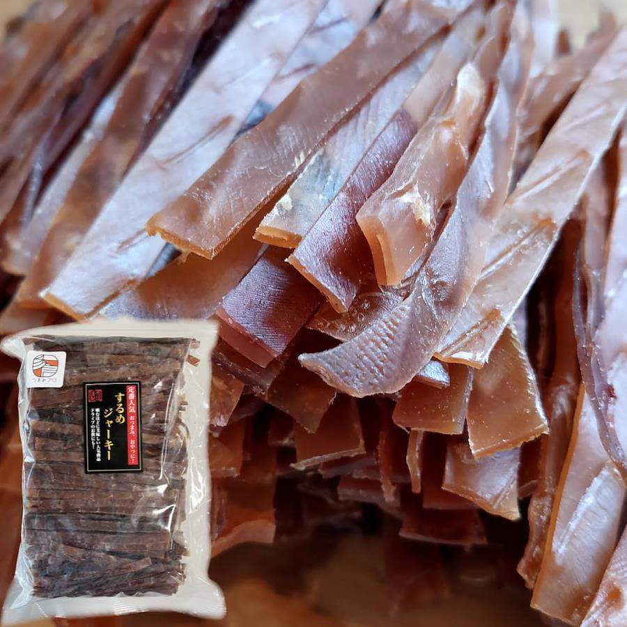 いかの耳を原料にジャーキー風に加工した大人気のおつまみです。 駄菓子屋やスーパーでも売れ筋の「するめジャーキー」をたっぷり業務用で規格しました。 酒の肴に、そのままおやつに!そのままでも美味しくお召し上がりいただけますが、おすすめの食べ方はお皿にマヨネーズをたっぷり出して、そこに一味唐辛子を適量かけて混ぜ合わせます。 お好みでお醤油をいれてもGood!それを付けてたべますと【味変】が楽しめ、ビールやお酒のおつまみによく合います。 是非お試しください。