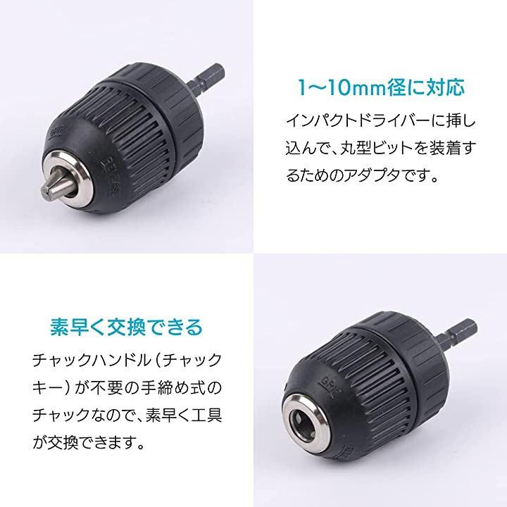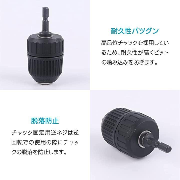 六角軸タイプのドリルチャックなので、一般的なインパクトドライバーにご利用いただけます。
