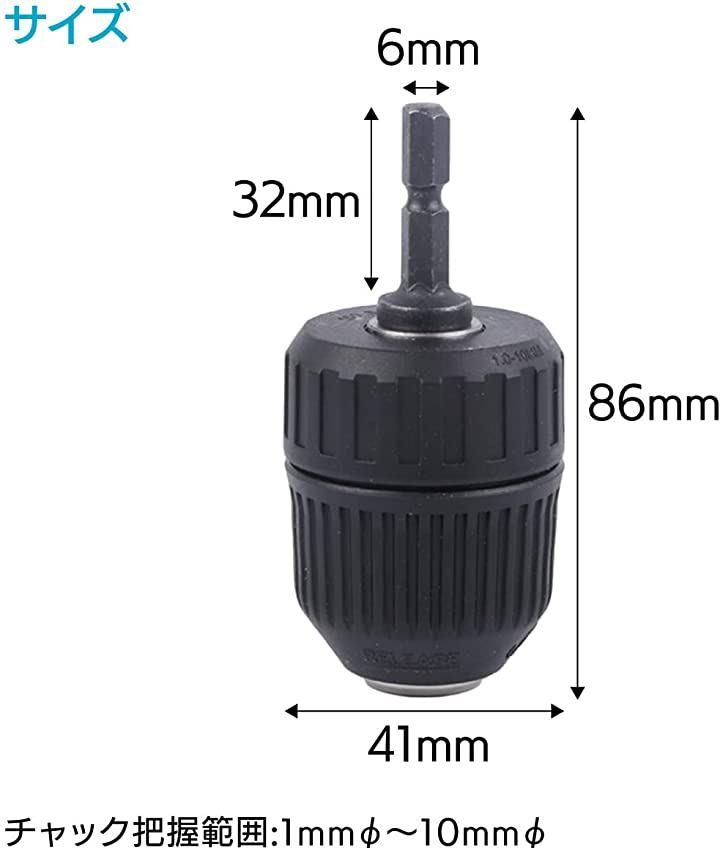 ・「仕様」サイズ:直径41mmx全長86mm / チャック把握範囲:1mmφ~10mmφ