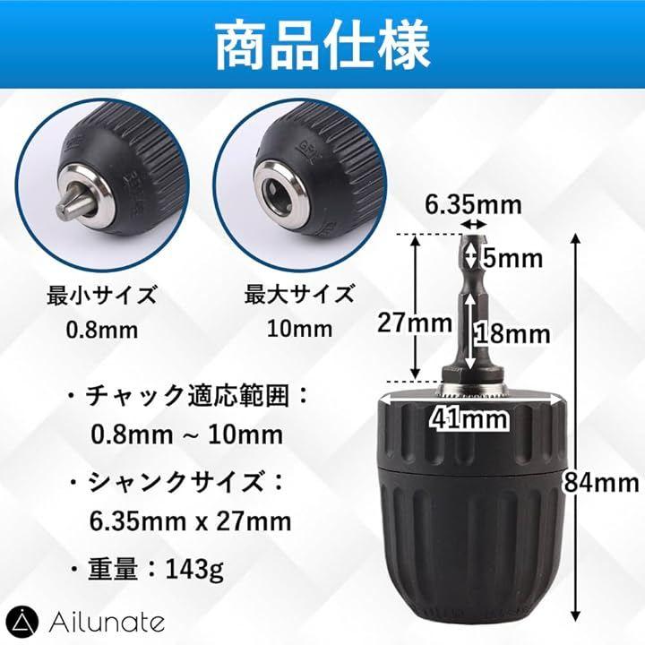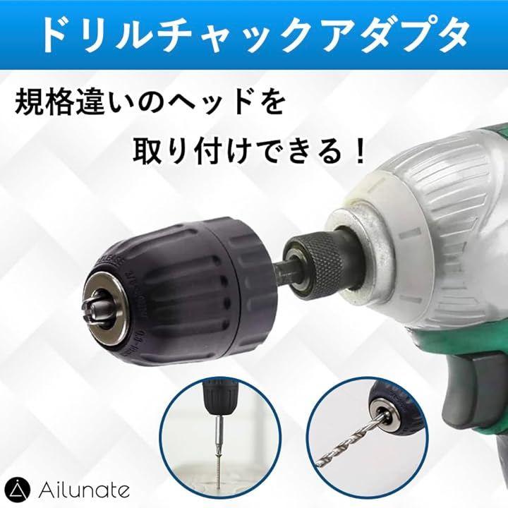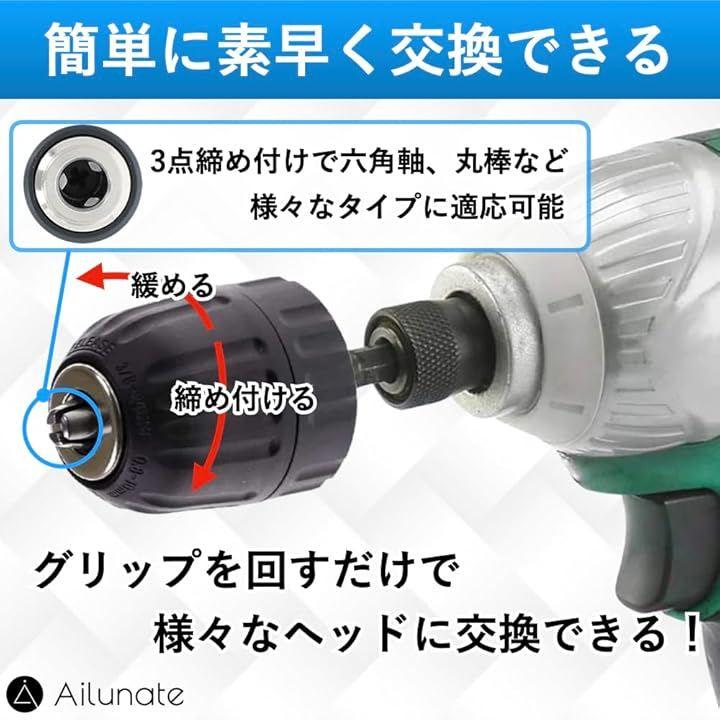 「簡単に素早く交換できる」キーレスチャック(チャックハンドル(チャックキー)が不要の手締め式のチャック)タイプのドリルアダプターに素早く交換できます。