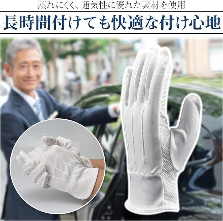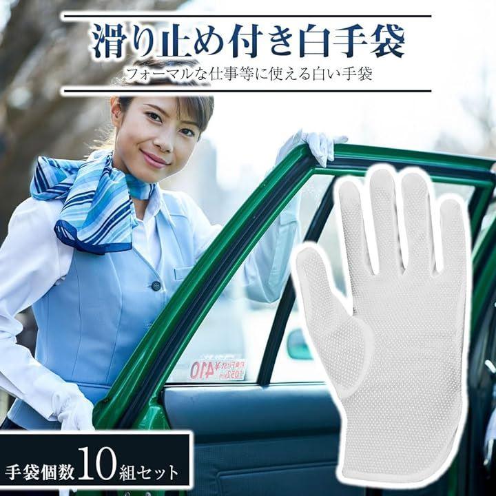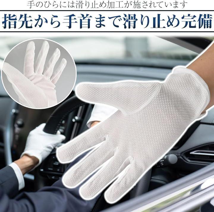 Driver gloves, white gloves with anti-slip, set of 10 pairs, cotton, formal, for care, security, drivers, light work, protection