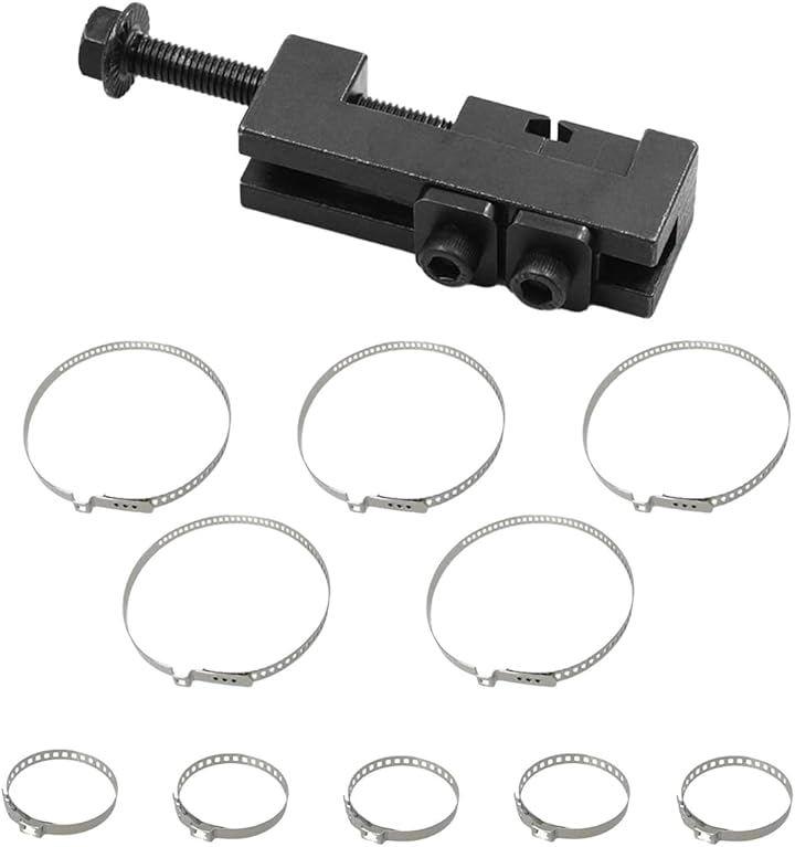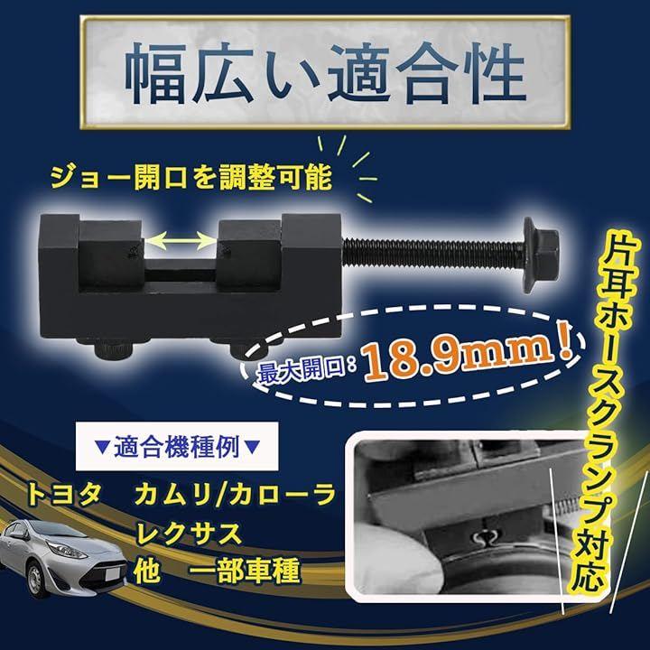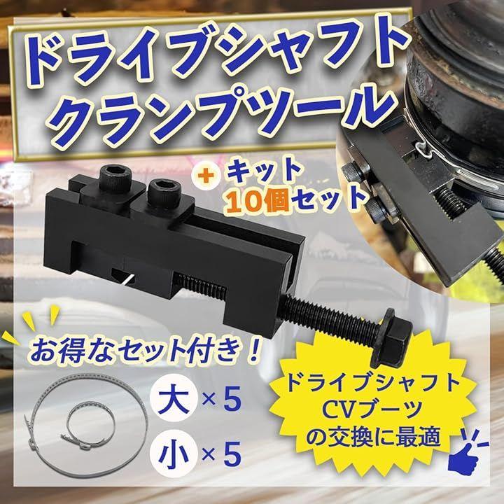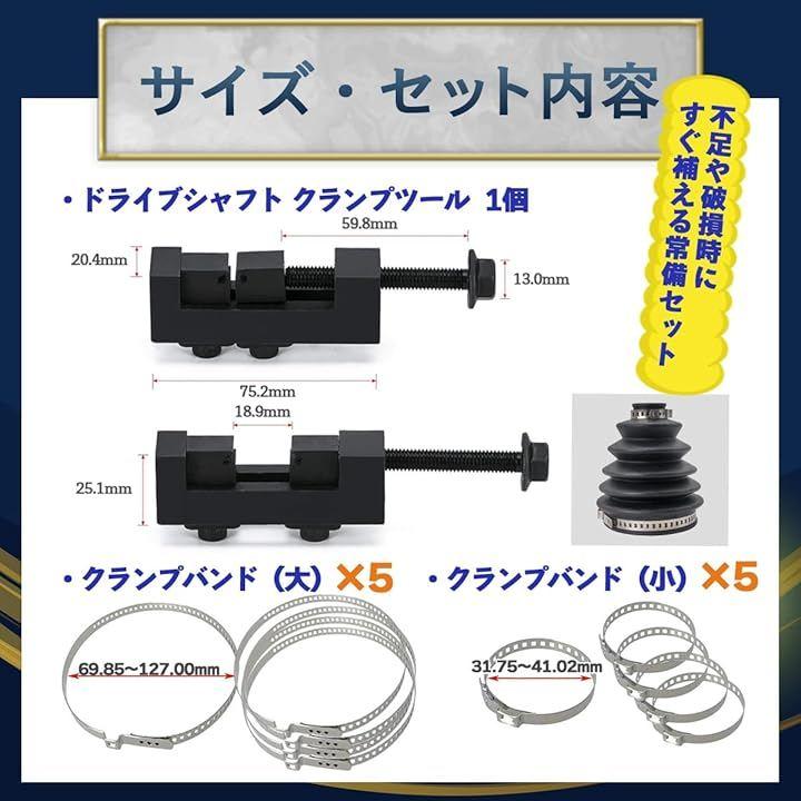 「商品詳細」 <内容物>:ドライブシャフトクランプツールx1、ブーツバンド(大)x5、ブーツバンド(小)x5 <クランプツールサイズ>:約25.1x75.2x20.4mm <クランプ最大開口>:約18.9mm <バンド材質>:ステンレススチール <用途>:CVブーツ交換・メンテナンス作業 *ツールとバンドがセットになっているため、追加部品を用意することなく作業を始められます。