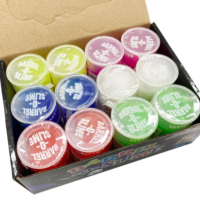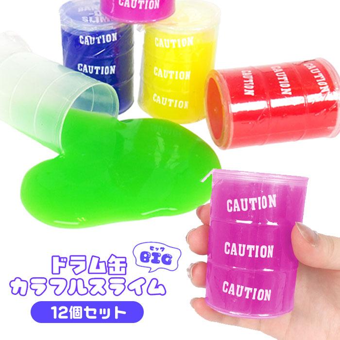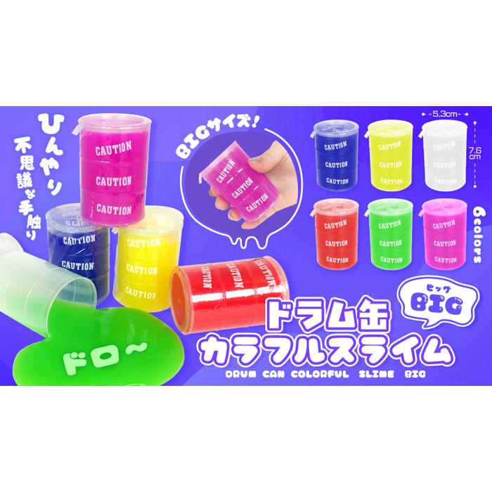 ドラム缶の形の容器に入ったカラフルなスライム♪