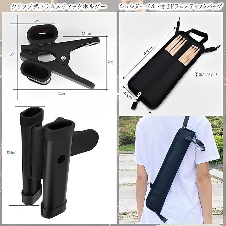 クリップ式 ドラムスティックホルダー&ショルダーベルト付き ドラムスティックバッグ 2点セット