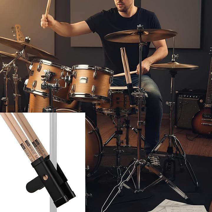 1.クリップ式 ドラムスティックホルダー 演奏を止めない。スムーズなスティック交換を実現するプロ仕様のホルダー このクリップ式ドラムスティックホルダーは、ドラムやパーカッションの演奏中に予備のスティックを素早く交換できるように設計された実用的なアイテムです。