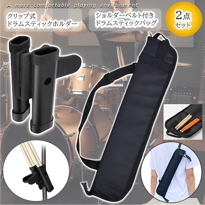 クリップ式 ドラムスティックホルダー&ショルダーベルト付き ドラムスティックバッグ 2点セット