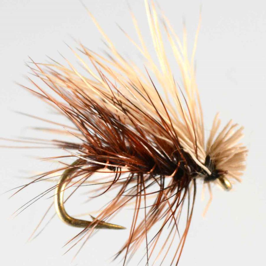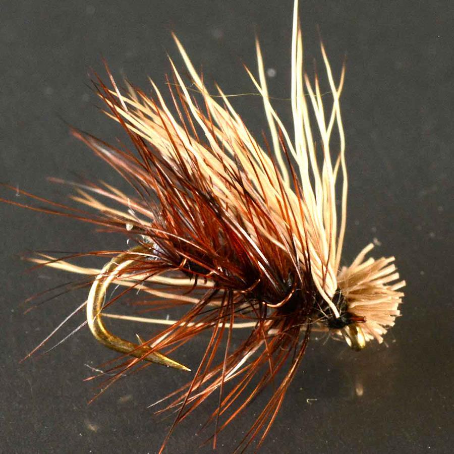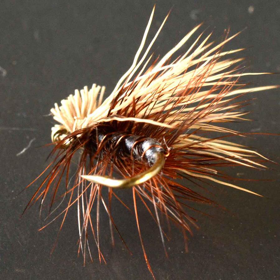 パラシュートタイプと並び多くのフライマンに絶大な信頼を得ているエルクヘアーカディス。言ってしまえばパラシュートとカディスがあればドライフライの釣りが成立してしまうほど優秀で万能なフライ。基本的にはトビケラを模して作られてはいるが、そのシルエットからテレストリアルや蛾などもカバーしてしまう使い勝手の高いフライ。