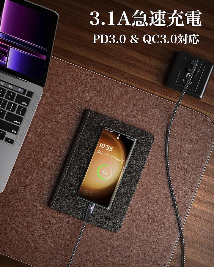 「USB 3.1標準&QC3.0急速充電」最新のUSB 仕様に準拠したCONMDEX USB C ケーブルはUSBタイプCデバイスを最大5V / 3.1Aで安全に充電し、QC 3.0 急速充電をサポートします。