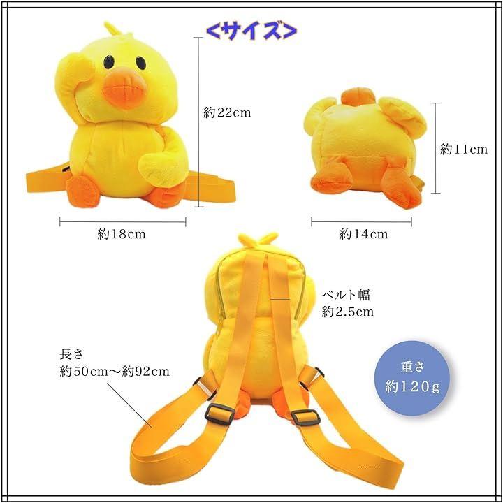 ふわふわやわらか素材の黄色が目を引くアヒルのぬいぐるみリュックです。