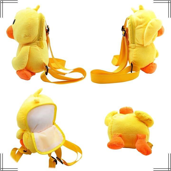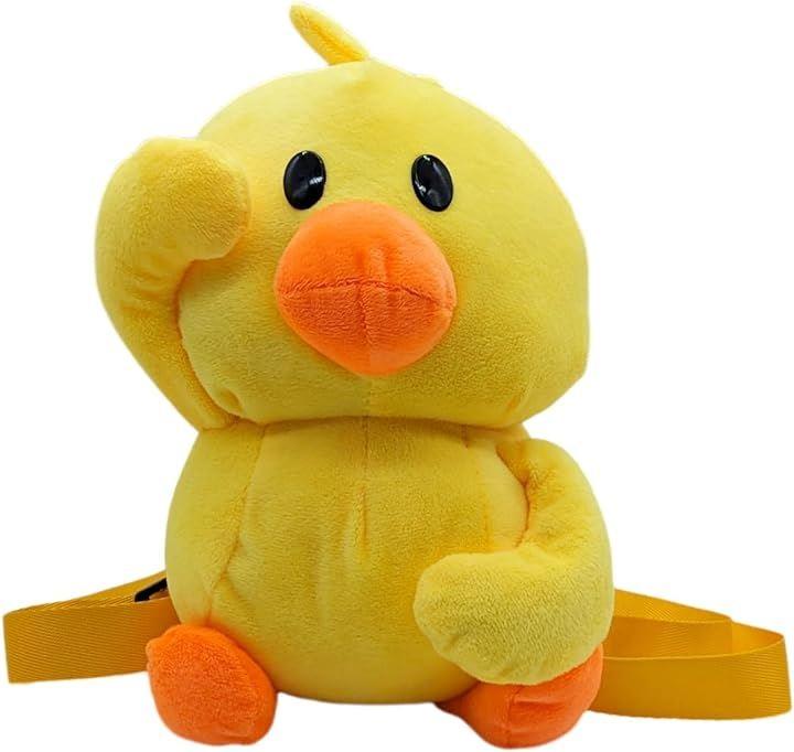 アヒルのぬいぐるみリュックサックはふわふわの素材で作られており、柔らかい触り心地が特徴。