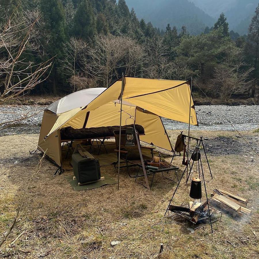 【サイズ】★定員:2名 設営時:幅2250×奥行3120×高さ1320cm 収納時:幅56×奥行き22×高さ22cm (キャノピーポール:Φ15×長さ1500mm)【重量】総重量:約4.5kg ■フライトシート/スタンディングテープ/メインポール/収納袋/ロープ類:約2350g ■インナーテント/グランドシート:約1520g ■キャノピーポール:約196g×2本 ■アルミペグ(13本):約170g【素材】■フライシート:40D リップストップナイロン(裏=ハイブリットコーティング) ■フロア:75D ポリエステル・タフタ(裏=PU コーティング) ■キャノピー:40D リップストップナイロン ■ポール:アルミニウム合金(A7001) ■キャノピーポール:アルミニウム合金【付属品】■グランドシート(フットプリント) ■スタンディングテープ ■キャノピーポール×2本 ・1.5m×2本 ■ガイロープ(自在金具付き) ・3m×6本 ・2m×2本 ■アルミペグ ・13本 ■取替え窓 ・フライトシート ・透明窓 ・耐熱煙突ポート ■収納袋※注意※ 本テントの雨天使用時には、縫い目にシームテープを貼るなどして雨漏り対策を行ってください。